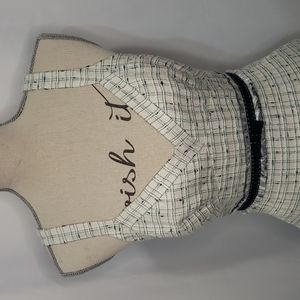 REBECCA TAYLOR Sleeveless Fitted Textured Tweed frayed waist mid with pockets!