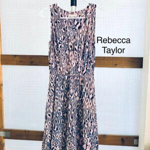 REBECCA Taylor 100% Silk Sleeveless Purple / Pink / Navy Leopard Animal Print A-Line Dress Sz4