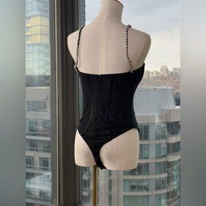 🆕 REBECCA VALLANCE 🧿 NWOT Eclipse Bodysuit, Black Mesh, Star Jewels, Sz US 4