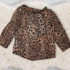 REBEL Cheetah Animal Print Tunic Peep Hole Back Sheer Top- XS