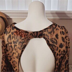 #leopard #animal-print #sheer #blouse #open-back #peep-hole #tunic #loose #sheer #mesh #openback