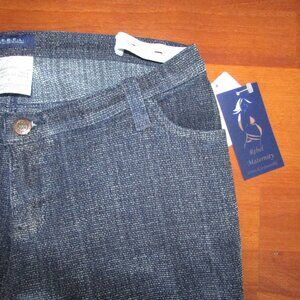 Blue textured chenille jeans styled maternity flared leg pants by R.E.B.E.L. Maternity