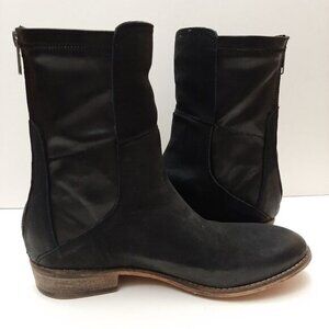 REBELS Mixed Media Short Boots Soft Genuine Leather Modern Black Sz 6 M