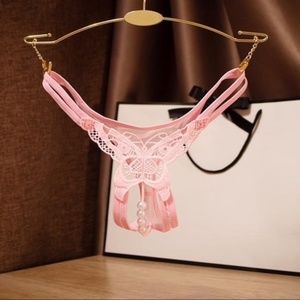 A beautiful RED embroidered Butterfly G-String with 4 Thick Pearls. Open crotch and sheer back.