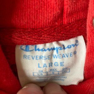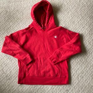 RED CHAMPION BRAND REVERSE WEAVE HOODIE, C LOGO
