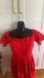 Bright cherry red cap sleeve skater style dress with large floral cut out details, eye-let/Lace style. Waist down is fully lined. Length is knee high. Bust area has light padding. Full length Zipper in back. Polyester.
