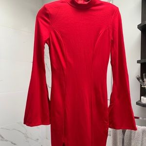 Red long sleeve dress from Fashion Nova. Never worn with tags still on it. Sleeves have slits and the dress is body hugging with shoulder pads.