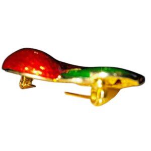Gold Tone, Red Glitter, Green Enamel