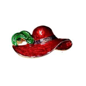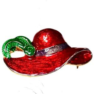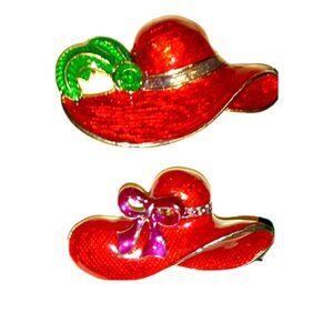 RED HAT VINTAGE Gold Silver Tone Brooches Rhinestones Enamel Ladies Society X2