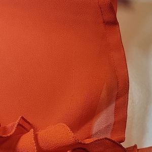 RED Sheer Ruffled collar and sleeve button up 3/4 sleeve. Size M