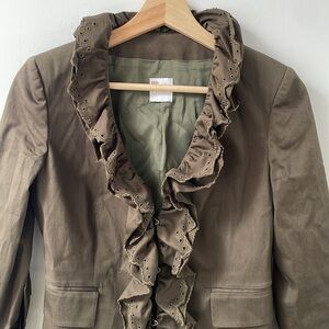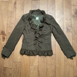 RED VALENTINO womens blazer jacket 2 olive green flared ruffle hem safari