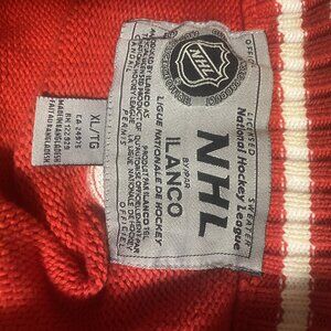 Partial zip official NHL sweater, classic styling with team logo.