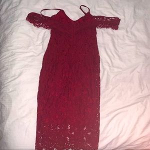 Great condition, very cute and comfortable. Top of dress is lace, and the same color lining is underneath so it is not see through at all (please see pictures). The lining is 100% Polyester
