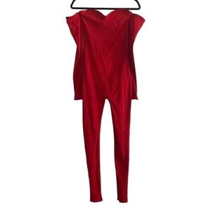 RED compressive off the shoulders jumpsuit long sleeves with thumbholes Size XL