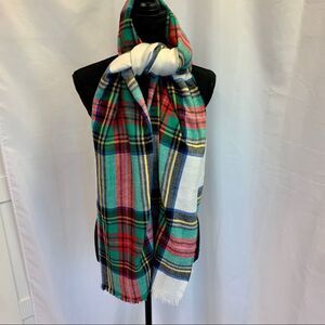 RED green black yellow ivory plaid check soft fall winter blanket scarf