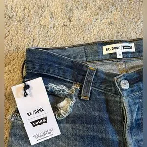 *notice in 3rd last photo, one distressed area on thigh (about 2” slit) is open to bare leg which was created by Re/done *