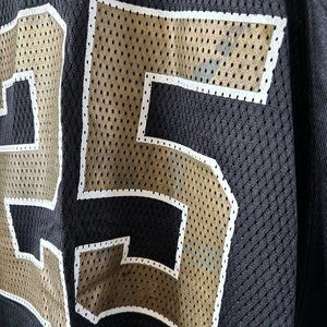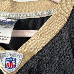 This used Reebok NFL New Orleans Saints jersey is perfect for young fans of Reggie Bush. The unisex children's size XL 18/20 fits youth players comfortably. The black jersey features the number 25 and Bush's name on the back, making it a great addition to any football-NFL fan's collection.