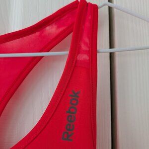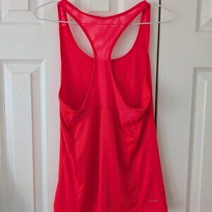 Deep tangerine racerback sports top in excellent condition. Size medium . Nylon/spandex mix. Washing instruction tag was cut off as it was bothering my neck.