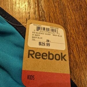 Reebok athletic shorts, navy blue shorts with elastic waistband and deep side pockets youth Medium or Large New with tags