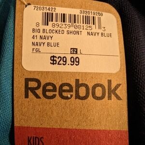 Reebok athletic shorts, navy blue shorts with elastic waistband and deep side pockets youth Medium or Large New with tags