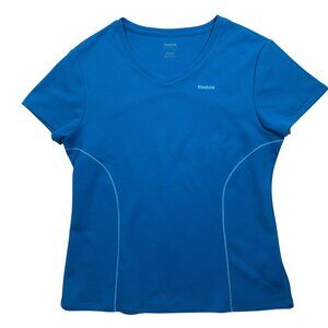 REEBOK womens PlayDRY Blue Short Sleeve Athletic Fitness Workout Shirt Sz M