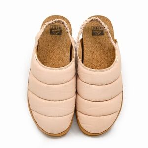 Details: Puffy nylon uppers, Adjustable/Expandable heel strap, Deep heel cupping, cork topsheet and a footbed that blends cushioning and rebound support