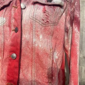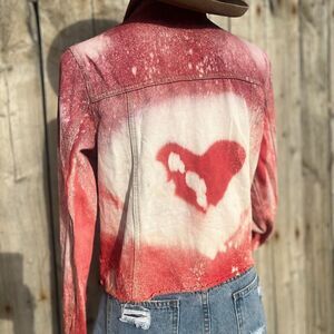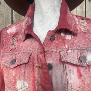 🤠REFASHIONED DYED CROPPED DISTRESSED RED JEAN JACKET SIZE SM