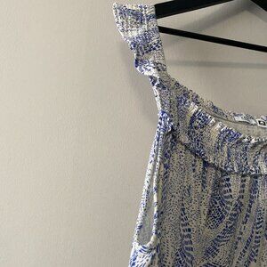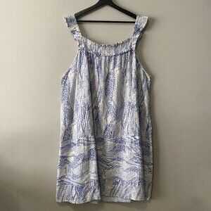 REFASHIONED Plus Size Upcycled 100% Cotton White Blue Double Gauze Strap Dress