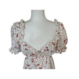 REFORMATION Channa Floral Print Sweetheart Dress in Weiss Size Small 100% Linen