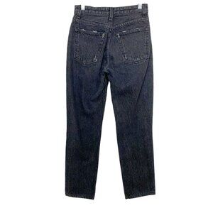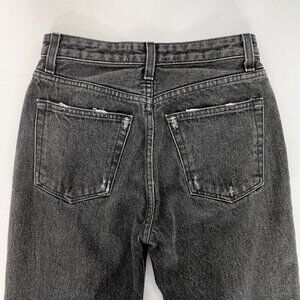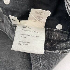 REFORMATION HIGH RISE CIGARETTE IN CHARCOAL GREY CUT LY008, this is a grunge vibe washed black / charcoal high rise/ high waist cigarette slim fit jeans in a 90s thick cotton denim - not stretch -zipper fly with a REF engraved button front closure - 5 pockets styling - belt loops, casual and not distressed yet very edgy vibe with a slight acid wash feel. verastile - fall and winter favorite yet wearable all year long.