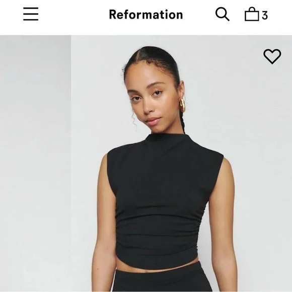 Stylish black top by Reformation. Soft fabric. Perfect for any occasion.