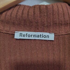 REFORMATION Thomas Knit Top Shirt Ribbed Collared V-Neck Chestnut Women's Small