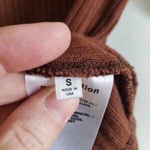 REFORMATION Thomas Knit Top Shirt Ribbed Collared V-Neck Chestnut