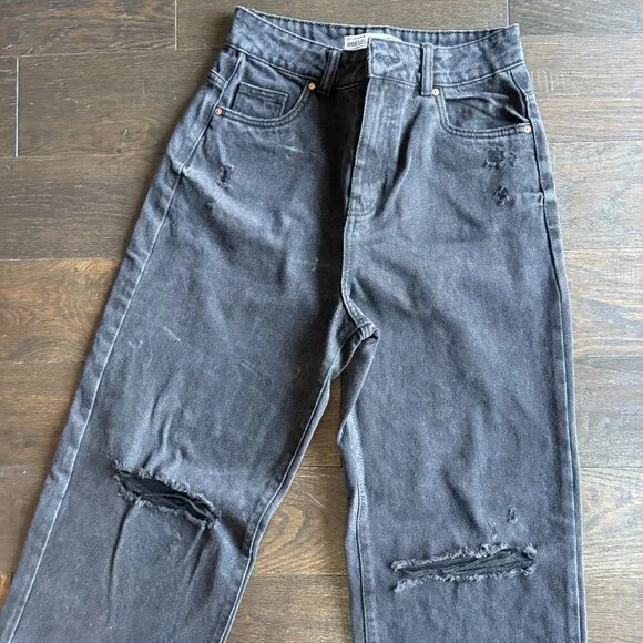 never worn, size us 05 (but fit up to a 7) wide-legged baggy black ripped high-rise jeans