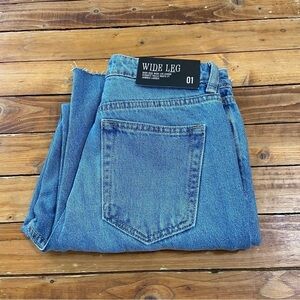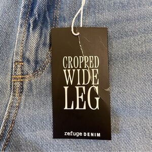 REFUGE denim jeans wide legs high rise waist blue 100% cotton cargo cropped 1