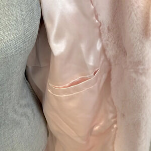 REGAL FUR is know for their beautiful fur coats! This gorgeous pastel pink faux rabbit fur jacket is fully lined. 3 Snap button closures and one button closure. It has side pockets and an inside pocket. New without tags. It was only worn once inside to take pictures. The fur feels so luxurious and soft and is of high quality materials. Would be perfect for a dressy occasion during the holidays.