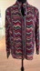 REGINA PORTER Vintage Button Front Long Sleeve Multi Colour Zig Zag Sheer Blouse