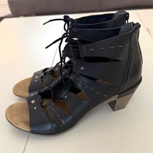 REIKER Gladiator Black Leather Sandal Lace Up Heels 9