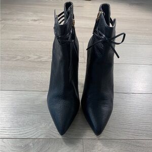 REISS Black Pointed Toe Leather Heeled Ankle Boots