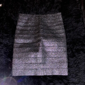 REISS Metallic silver Elastic high waisted bandage skirt Sz 6