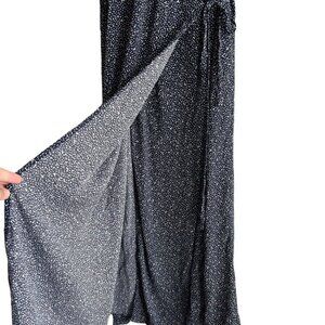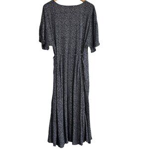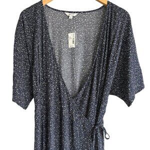 REITMANS Blue Patterned Short Sleeve Wrap Maxi Dress Size US L. This dress features a v neckline, self tie on a wrap detail with a flutter short sleeve. The fabric is a lightweight Viscose and easy to wear and wash. Colour is a gorgeous navy blue with a white and light blue speck pattern.