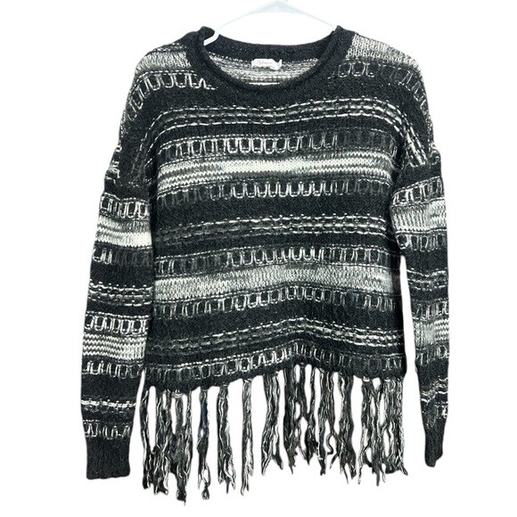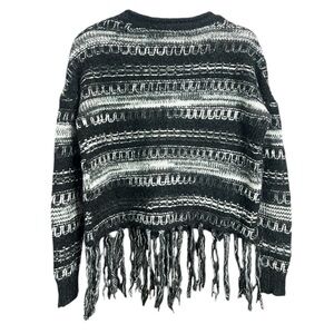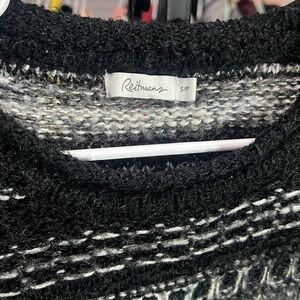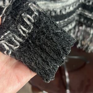 REITMANS Fuzzy Black Knit Sweater Oversize Small Cable Knit Pullover Tied Hem
