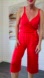This vibrant red jumpsuit from Reitmans features a chic wrap-style bodice and wide-leg cropped pants, offering a relaxed yet flattering silhouette. The lightweight fabric and sleeveless design make it perfect for warm weather, while the defined waist adds a touch of elegance.
