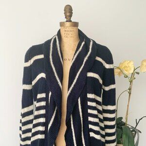 REITMANS Size LARGE Striped Navy Blue and Beige Long Cardigan