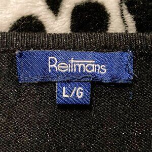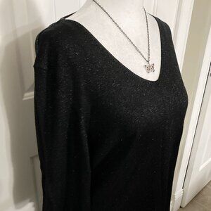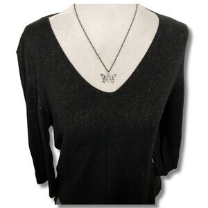 REITMANS Sparkly black thin knit v-neck sweater ~ MEDIUM LARGE metallic knit top