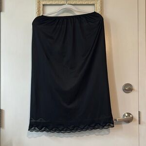 Elegant vintage half slip in classic black. Features a delicate lace hem for added elegance.