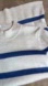 NWT Oversized and flowy lightweight turtleneck/mock neck classic knit sweater with short side hem slits. Features a chunky blue and white-grey striped print.