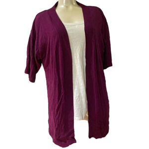 Size XL purple cardigan. Great to transition into the fall season with. Short sleeved tunic length. Open front. From Reitmans. VGUC. Cream coloured tee not included.
