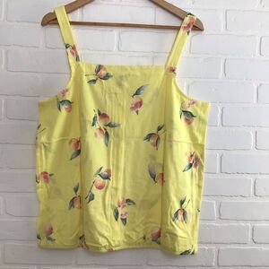 REITMANS yellow cotton linen tank top summer boxy fruits peaches pattern XXL