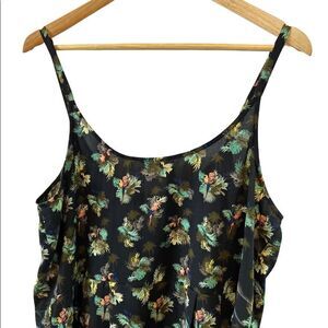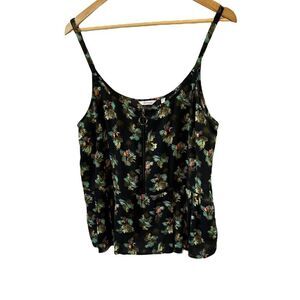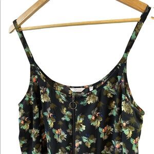 REITMANS Petites Black Printed Lightweight Spaghetti Strap Peplum Zip Tank Top